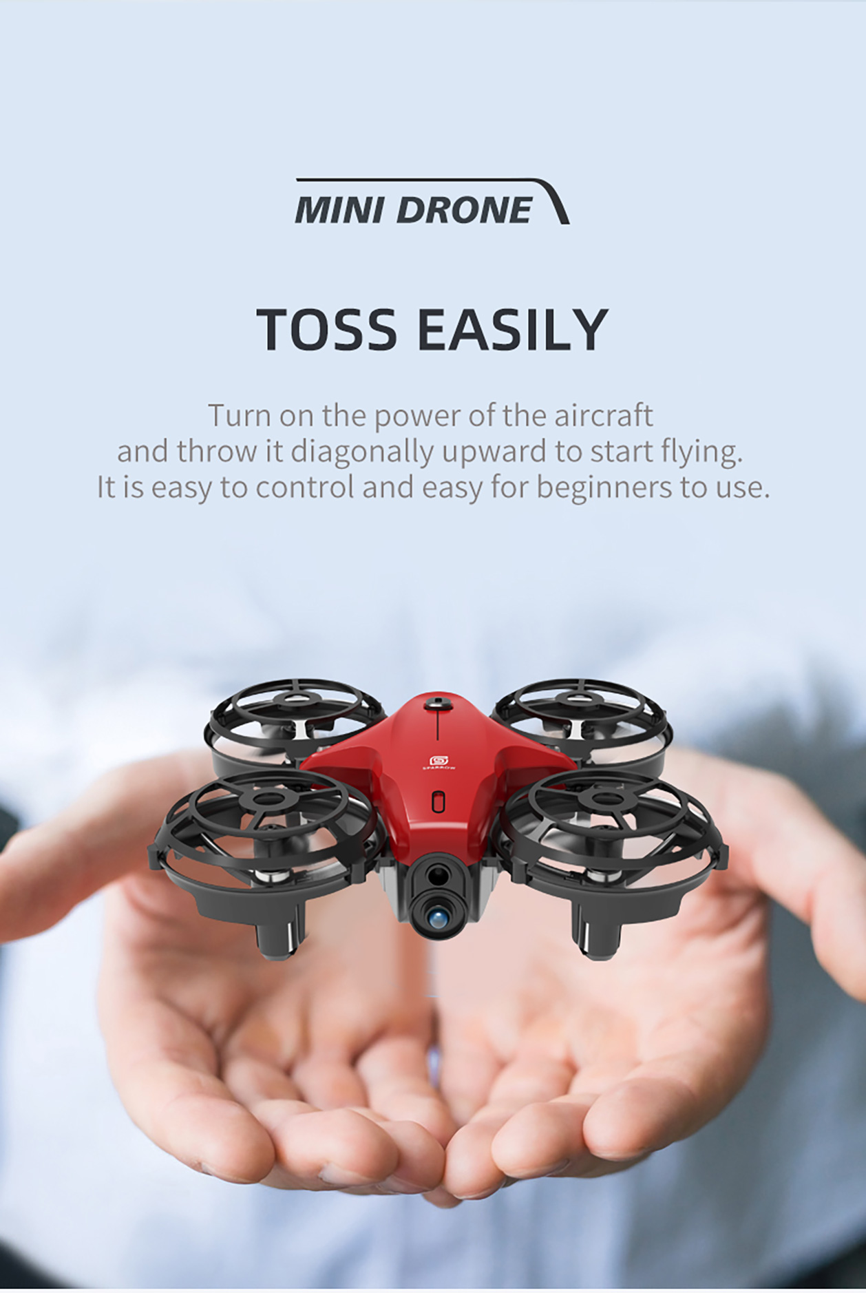 Turn on the power of the drone and throw it upward to start flying. It is easy to control and easy for beginners to use.